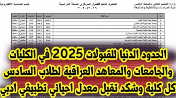 تاريخ النشر “الـحٌــدود الدنــيـا” معدلات القبول المركزي في الجامعات العراقية 2024-2025 علمي وأدبي والاستعلام عنها عبر mohesr.gov.iq