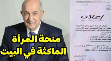 تاريخ النشر “سجل الان” رابط وخطوات التسجيل في منحة المرأة الماكثة في المنزل بالجزائر 2025.. واهم شروط الحصول عليها