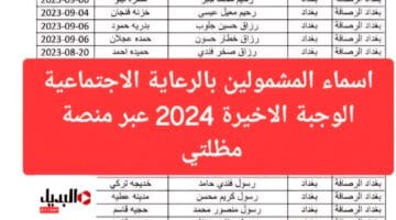 تاريخ النشر ” مظلتي” الآن رابط تحميل أسماء الرعاية الاجتماعية الوجبة الاخيرة فى العراق 2024 جميع المحافظات pdf