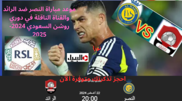 تاريخ النشر احجز تذكرتك متوفرة الآن.. موعد مباراة النصر ضد الرائد والقناة الناقلة في دوري روشن السعودي 2024-2025