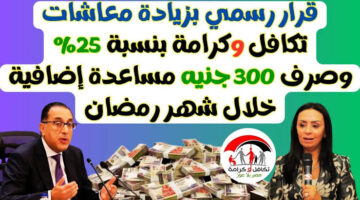 تاريخ النشر زيادة 300 جنيه منحة رمضان.. موعد صرف معاش تكافل وكرامة لشهر مارس 2025 و تفاصيل الزيادة الجديدة