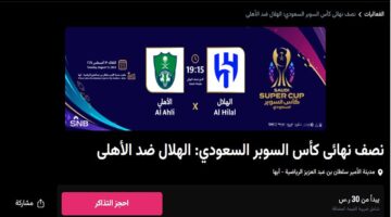 تاريخ النشر “تبدأ من 30 ريال”.. احجز تذاكر مباراة الهلال والأهلي في نصف نهائي كأس السوبر السعودي 2024