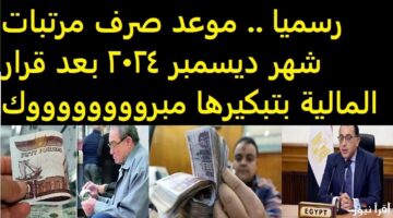 تاريخ النشر رسميا المالية تعلن موعد صرف مرتبات الموظفين لشهر ديسمبر 2024 لجميع الموظفين – الحق شوف حسابك